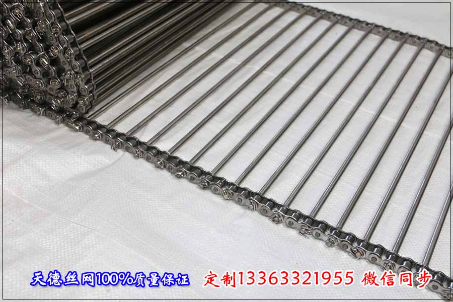 鏈桿輸送帶可采用碳鋼、不銹鋼201/304/316不銹鋼材料,以鏈條傳動(dòng),鏈條可選用標(biāo)準(zhǔn)鏈條和雙節(jié)距輸送鏈條使網(wǎng)帶受力減小容易安裝網(wǎng)帶的附屬配件,如擋板,側(cè)翼,用于輸送固體物料,通透性好,易清洗. 旋的繞絲串起來形成平衡編織的輸送網(wǎng),螺距能做到3毫米,每1米寬網(wǎng)帶有333個(gè)圈。節(jié)距能做到6毫米,每1米網(wǎng)帶長有166根曲軸。 該網(wǎng)帶通常網(wǎng)絲是圓的,但也可以制作成扁絲的。材料可選碳鋼、201不銹鋼、304不銹鋼、316不銹鋼等。