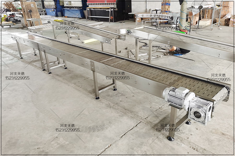鏈板輸送機(jī)歡迎來(lái)電定制河北天德雞胸肉油炸流水線鏈板輸送機(jī):15231229955 網(wǎng)址:http://www.tz10000.cn/