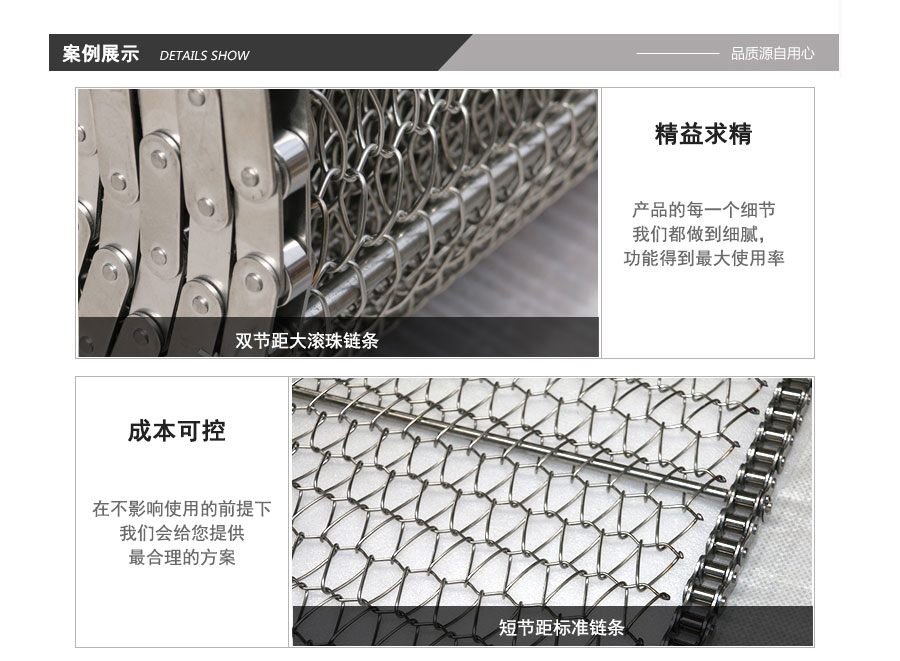 不銹鋼網帶屬于非標準件,我們將根據你提供的規格長寬,材質,絲徑,編制結構尺寸,支軸直徑,支軸間距,鏈條型號等數據核算成本和制作.