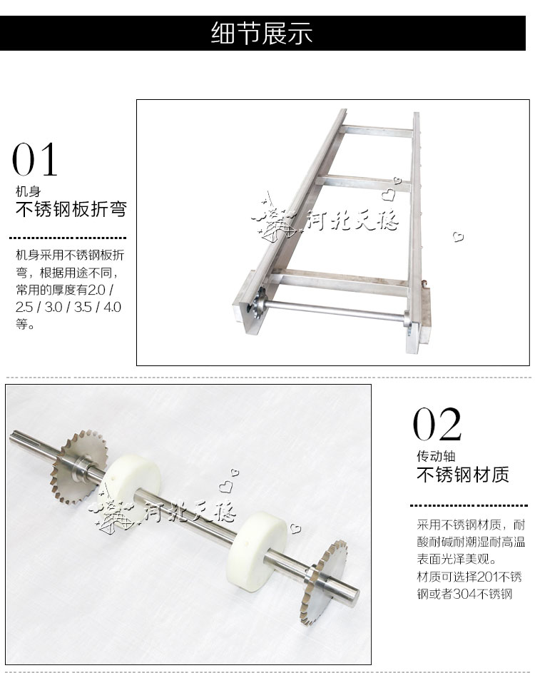 2.鏈板有不銹鋼和工程塑料等材質,規格品種繁多,可根據輸送物料和工藝要求選用,能滿足各行各業不同的需求。