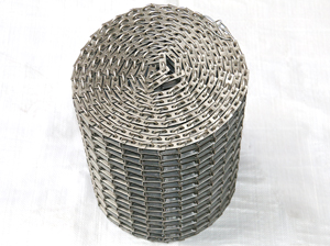 扁絲網(wǎng)帶是由軋扁鋼絲編織而成,可以用網(wǎng)帶輪驅(qū)動,其特點輸送平穩(wěn)不打滑。