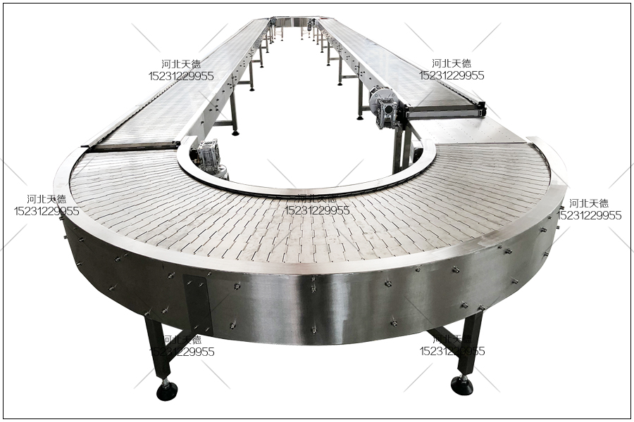 這臺設備是北京的客戶定制的,這臺鏈板輸送機流水線是由4臺鏈板輸送機組合安裝成的,有兩臺180度轉彎機和兩條平面輸送鏈板輸送機組裝成的,整臺設備長度為12米,寬度為800毫米,采用了2.5毫米后的鋼板轉彎成機身作為機架使用,采用板厚1.5毫米厚的鏈板作為輸送鏈板來輸送物品。整臺機器采用螺絲進行拼接安裝成,可以方便的拆卸,運輸也十分的方便。